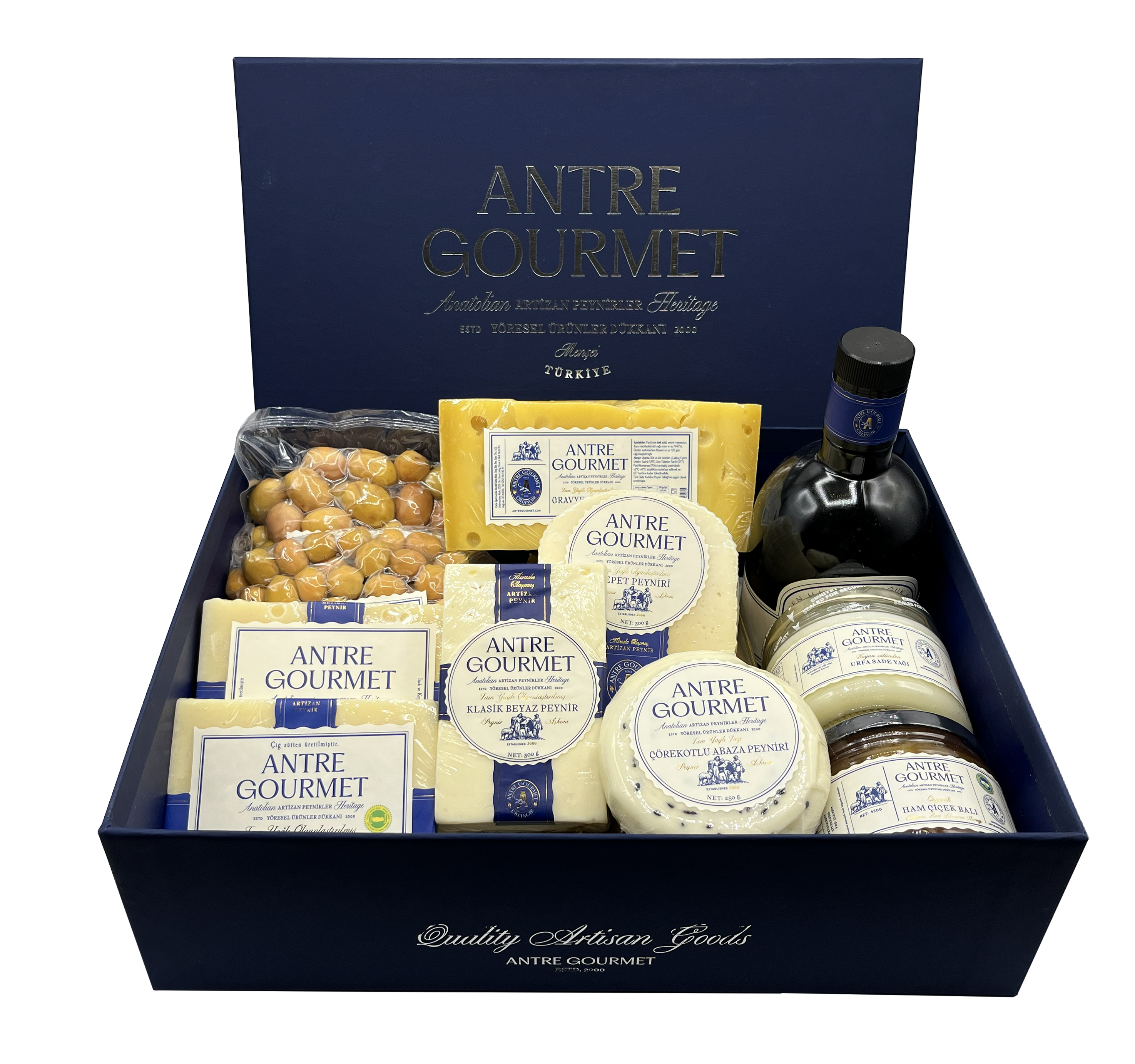 Antre Gourmet Klasik Yılbaşı Kutusu - 2026 2026 yılına birlikte girme heyecanımızla Antre Gourmet 2026 kutuları hazırladık. Klasik kutumuzun içerisinde çeşit çeşit ürünlerimize ek olarak sevgimiz, birlikte kutlanan her ana olan coşkumuzu da koyduk. Şimdiden iyi yıllar dileriz. 🎄 Not: Sadece İstanbul için teslimat seçeneği mevcuttur. İçerik Bergama Tulum Peyniri - 300 gr. Klasik İnek Peyniri - 300 gr. Edremit Sepet Peyniri - 300 gr. Kars Gravyeri - 300 gr. Abaza Peyniri / Çörekotlu - 250 gr. Mihaliç Olgunlaştırılmış - 250 gr. Ayvalık Kırma Zeytin - 250 gr. Sığacık Güzeli Zeytin - 250 gr. Antre Gourmet Sade Yağ - 250 gr Antre Gourmet Ham Bal - 450 gr Antre Gourmet Zeytinyağ - 500 ml. Galeta - 1 ad. Yılbaşı Hediye Kutusu - 1 ad. |